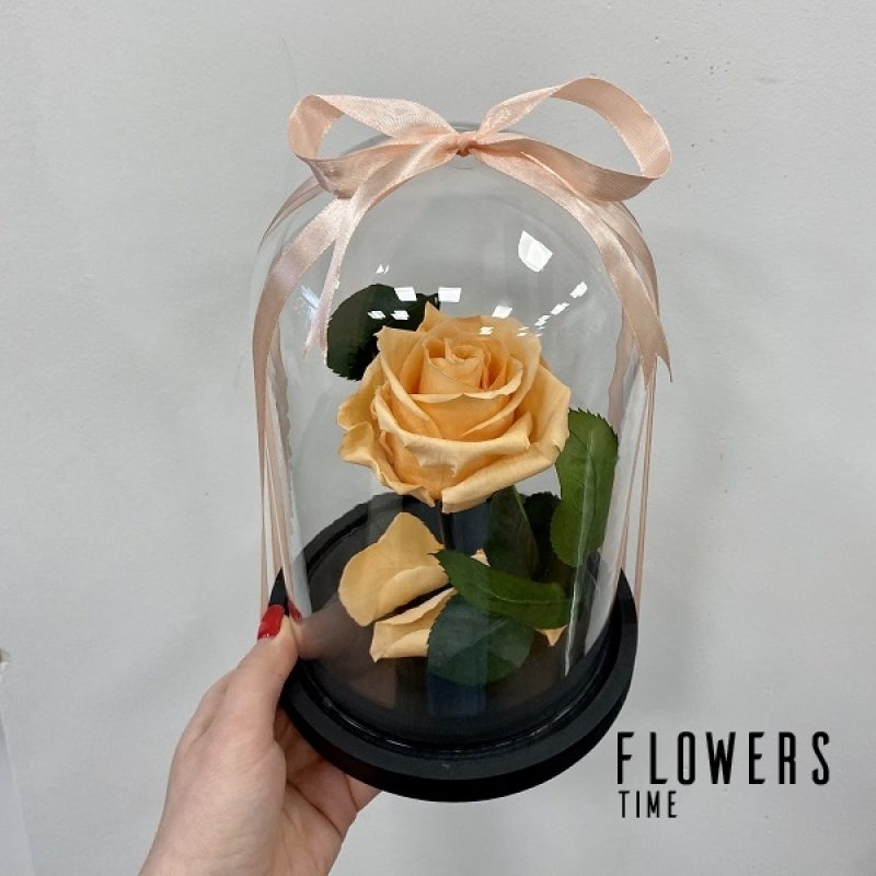 Small peach sleeping rose under glass