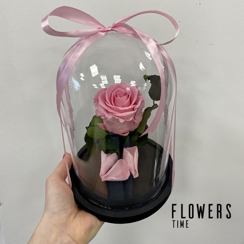Small pink sleeping rose under glass