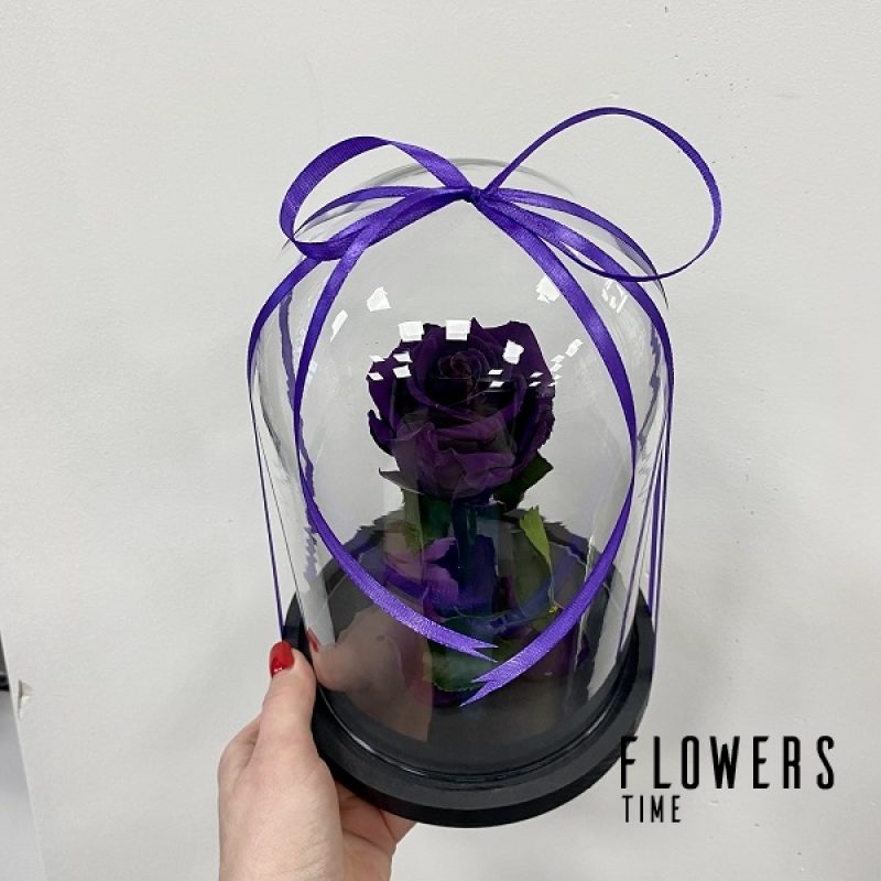 Small purple sleeping rose under glass