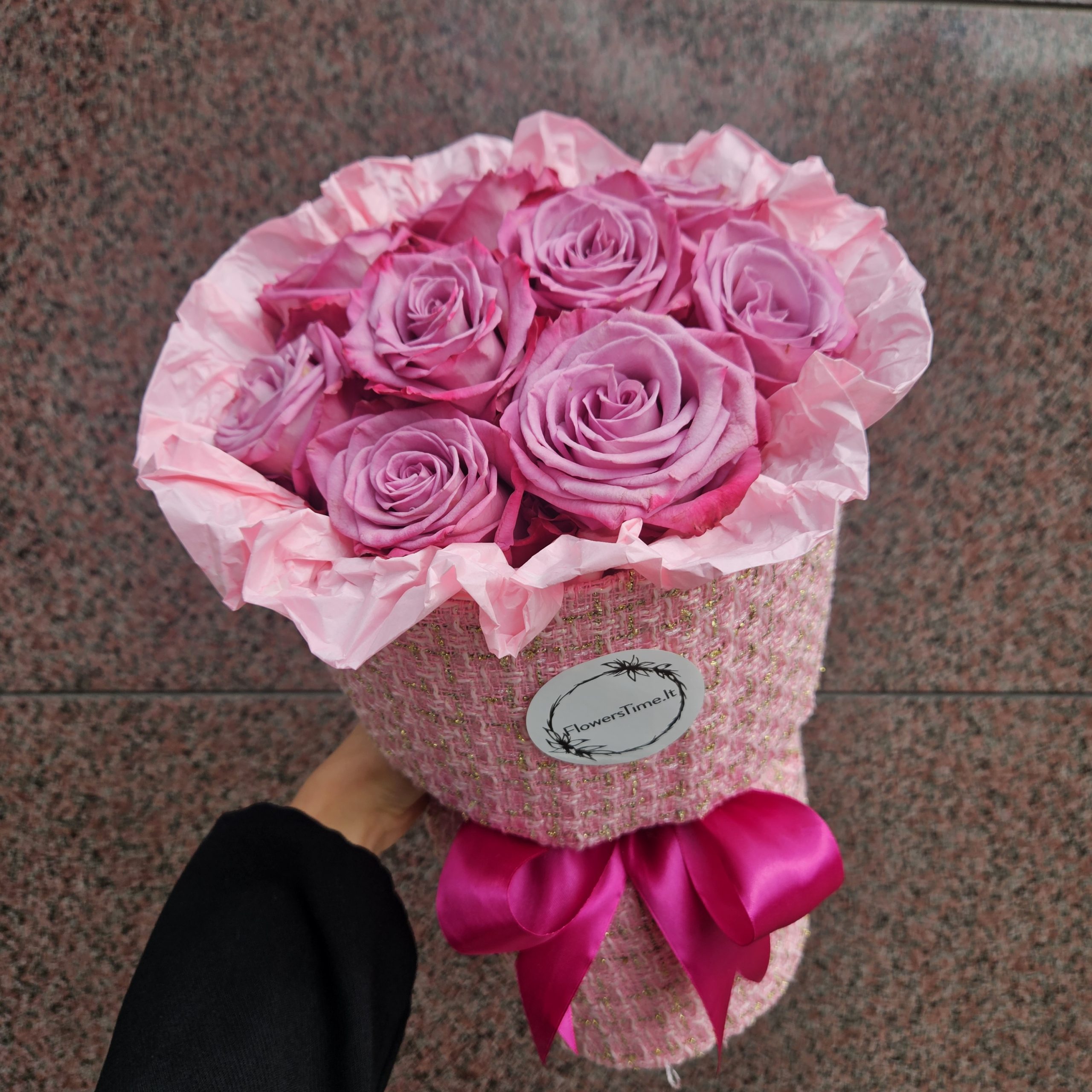 Rožinių rožių kompozicija floristinėje oazėje – elegantiška, švelni ir labai kvapni gėlių puokštė be vazos. Rožės įsmeigtos į drėgną oazę, todėl ilgai išlieka šviežios ir gyvybingos. Įpakuota į prabangų medžiaginį apvalkalą, kuris suteikia išskirtinumo ir subtilios prabangos pojūtį.